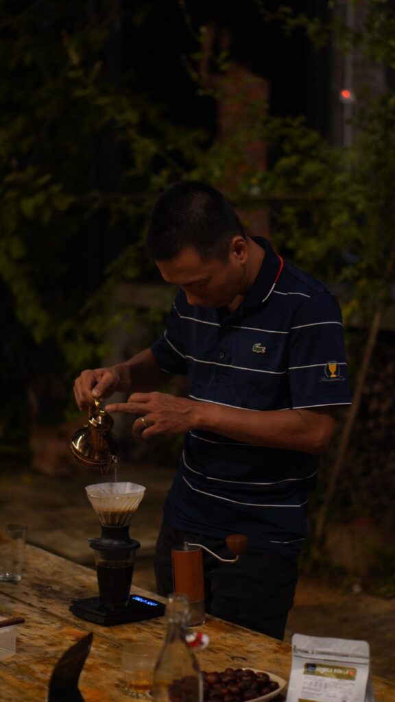 Từ những mẻ rang thủ công đến từng chuyển động pha chế chính xác, mỗi bước trong quy trình đều được thực hiện với sự tôn trọng hương vị tự nhiên. Đó là hành trình để hạt cà phê bộc lộ tính cách riêng và trở thành tách cà phê tròn đầy bạn thưởng thức hôm nay.